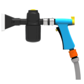 The i-spraywash system is a plug & play foam gun with an integrated dosing feature. It uses a tablet and has a special nozzle that creates an active foam that really sticks to the surface.