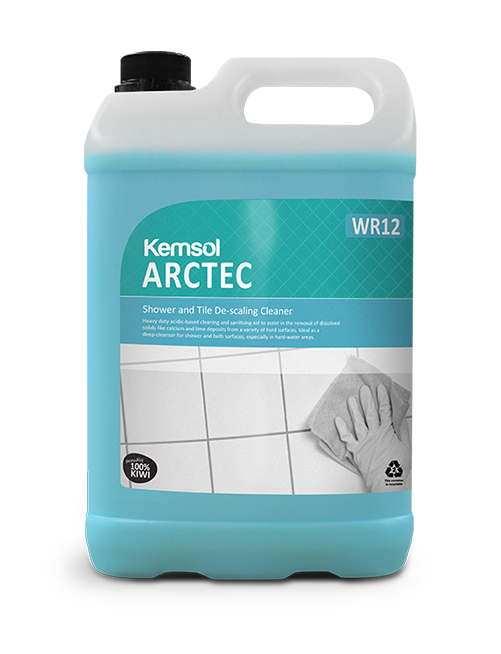 Heavy-duty acidic-based cleaning and sanitising aid to assist in the removal of dissolved solids like calcium and lime deposits from a variety of hard surfaces. Ideal as a deep-cleanser for shower and bath surfaces, especially in hard-water areas. Use undiluted. Spray or apply directly onto surfaces. Leave for 5-10 minutes, then scrub (if required), and rinse with fresh water. A non-scratching cleaning pad may be used to assist break up extra heavy soiling. Always test on a small area to be cleaned first, to ensure compatibility.
