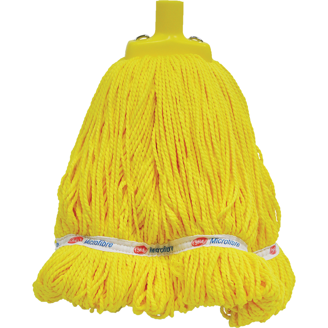 Gala Microfibre Mop Heads have a round shape and are made with microfibre yarn. The yarn is looped to minimise tangling and linting and the round skirt shape gives maximum floor coverage, for an efficient clean. They are colour coded to prevent cross-contamination and can be used with or without chemicals. A round Yellow microfibre mop head that weighs 400g Looped microfibres minimise linting and tangling Round skirt shape provides maximum floor coverage Cross contamination is minimised as they are colour coded Suitable for use with or without chemicals