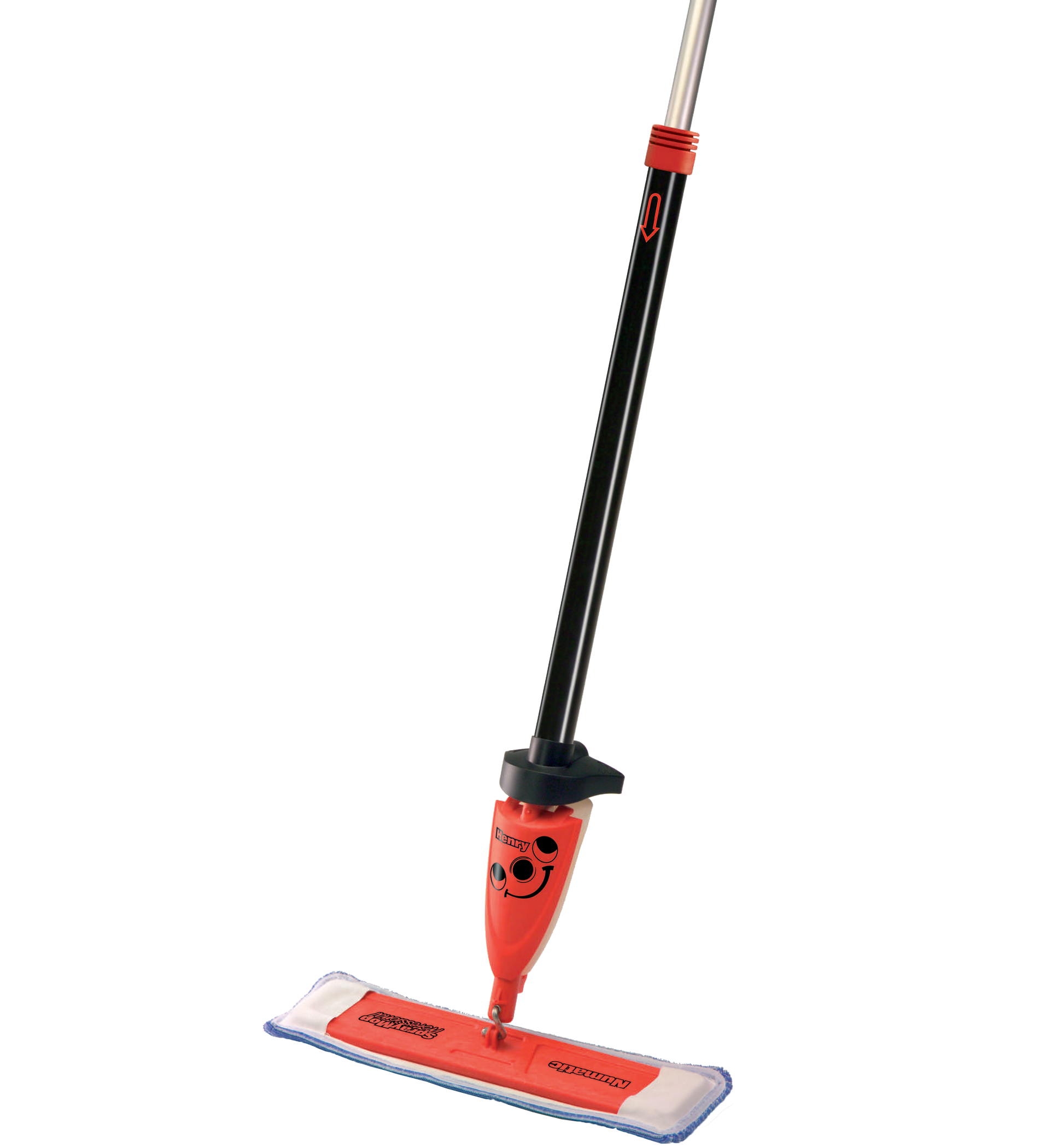 The Henry Spraymop combines all the real advantages of Microfibre floor mops and can be used dry or wet, with or without cleaning agents or disinfectant. The on-board liquid dispenser, foot or hand operated, ensures that the mop head can be maintained in a damp condition at all times allowing larger surfaces to be thoroughly cleaned without the use of a bucket. Use on a vast range of hard floor surfaces: quarry tiles, PVC tiles, linoleum and laminate surfaces all of which need a fast means of maintenance. The Spraymop is used extensively for spot cleaning and maintenance in hotels, restaurants, shops and offices.