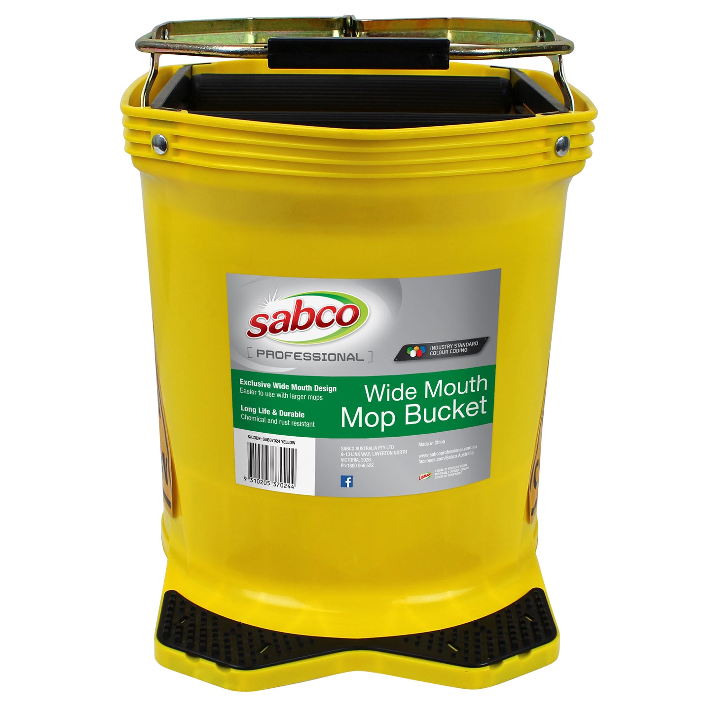 The Sabco Wide Mouth Bucket has a unique wide-mouth design for easy use even with larger mops.